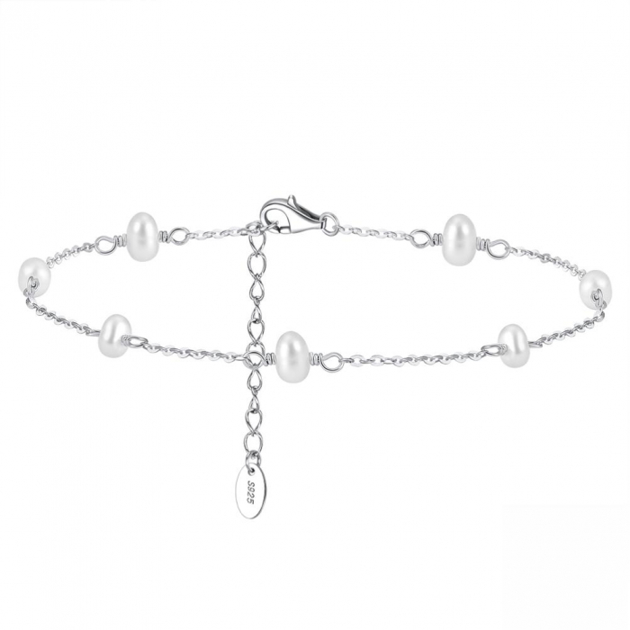 Brățara de gleznă Fay din argint rodiat cu perle de cultură