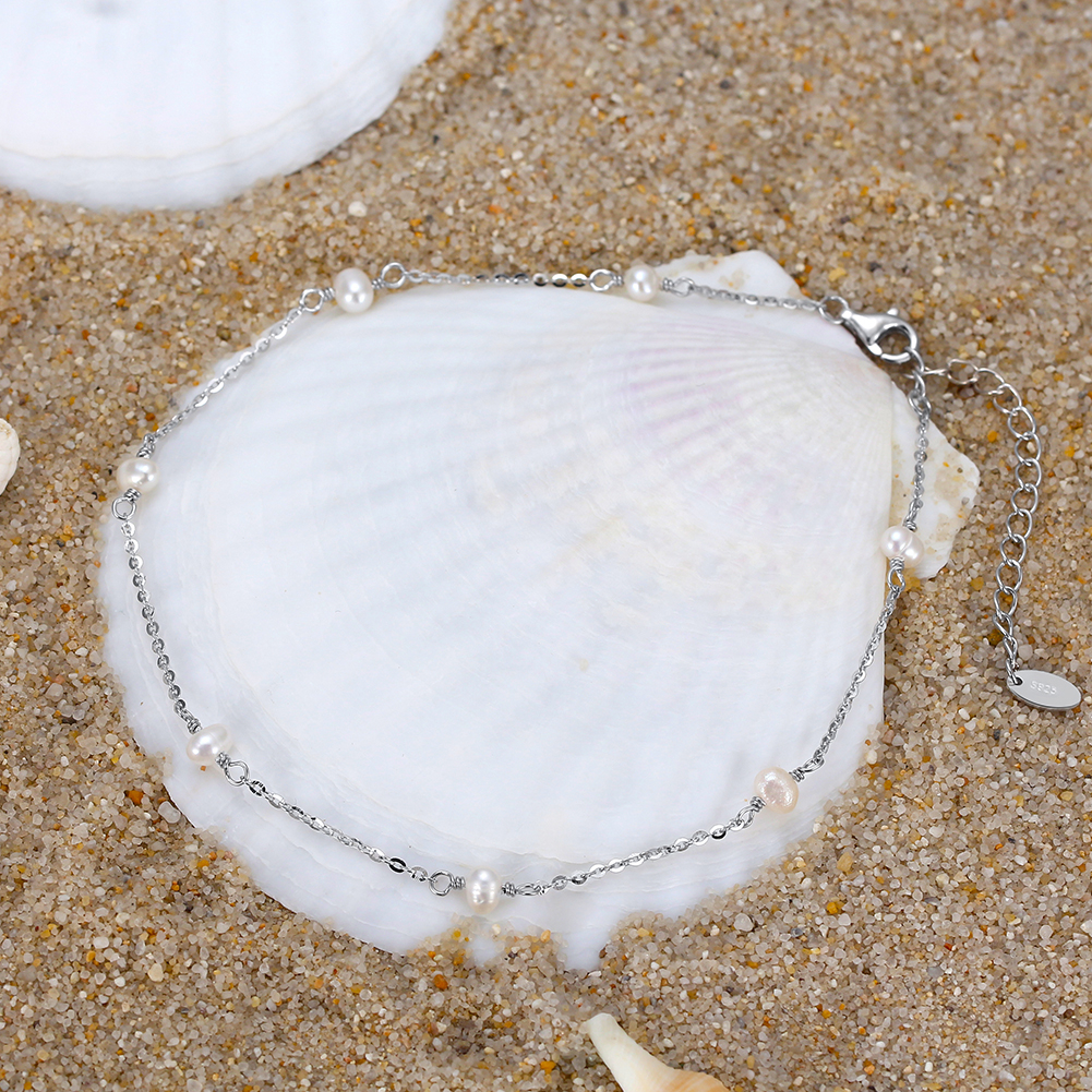 Brățară de gleznă Fay din argint rodiat, decorată cu perle de cultură – un accesoriu delicat și elegant, perfect pentru ținute de vară și momente speciale.