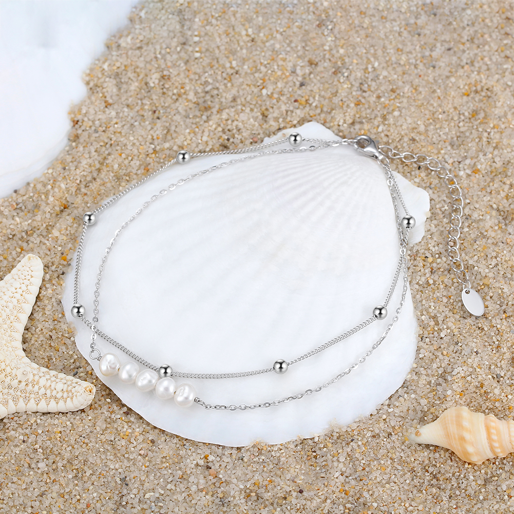 Brățară de glezna Fabiana din argint rodiat cu perle de cultură, cu lungime ajustabilă 22+5 cm. O bijuterie elegantă și delicată, perfectă pentru orice ocazie.