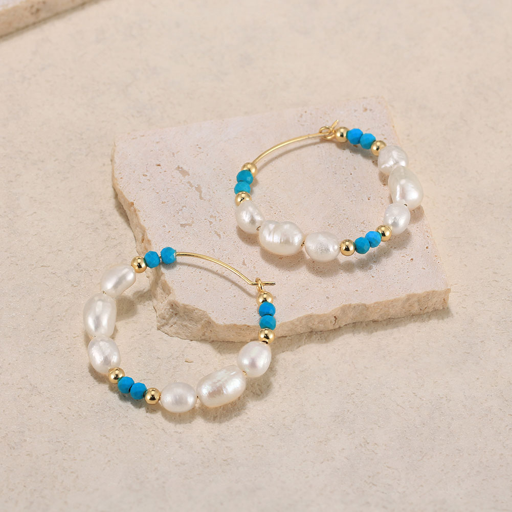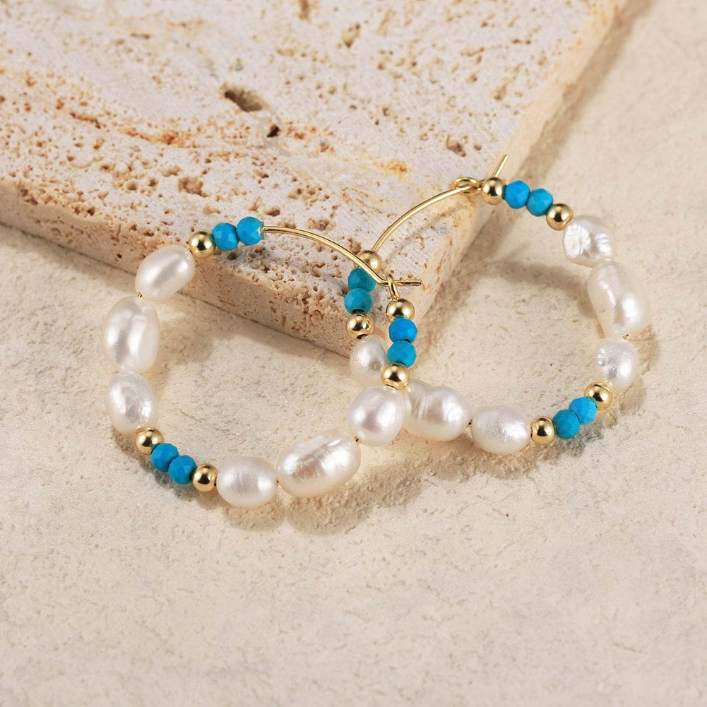 Descoperă cerceii boho-chic din argint placat cu aur 14K, cu perle de cultură și turcoaze. Perfecți pentru festivaluri și ținute elegante! Comandă acum! 🚀✨"