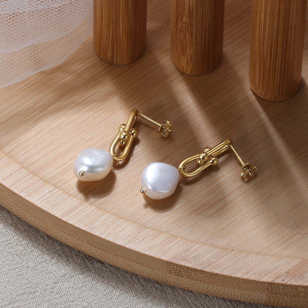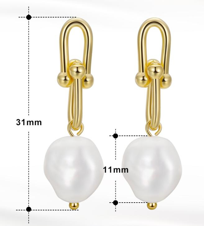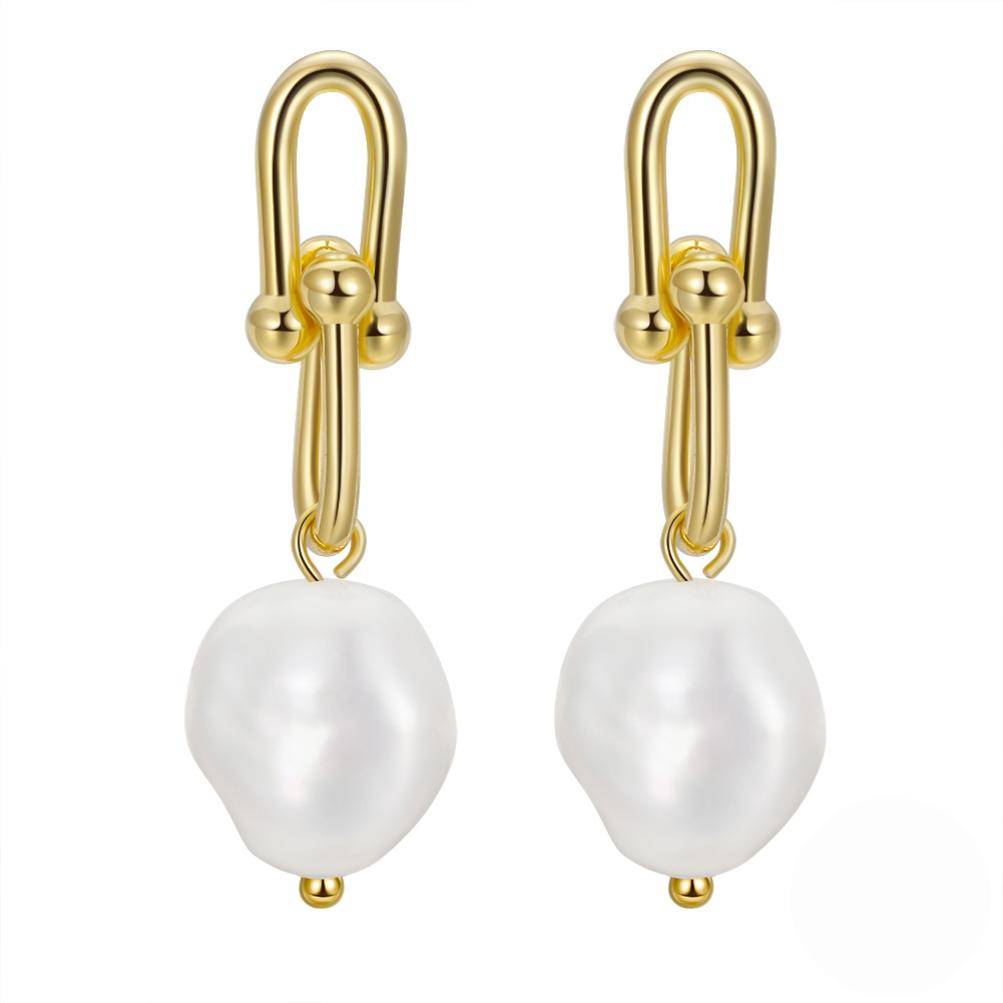 Cercei Link din argint placat cu aur 14k și perle de cultură – design modern