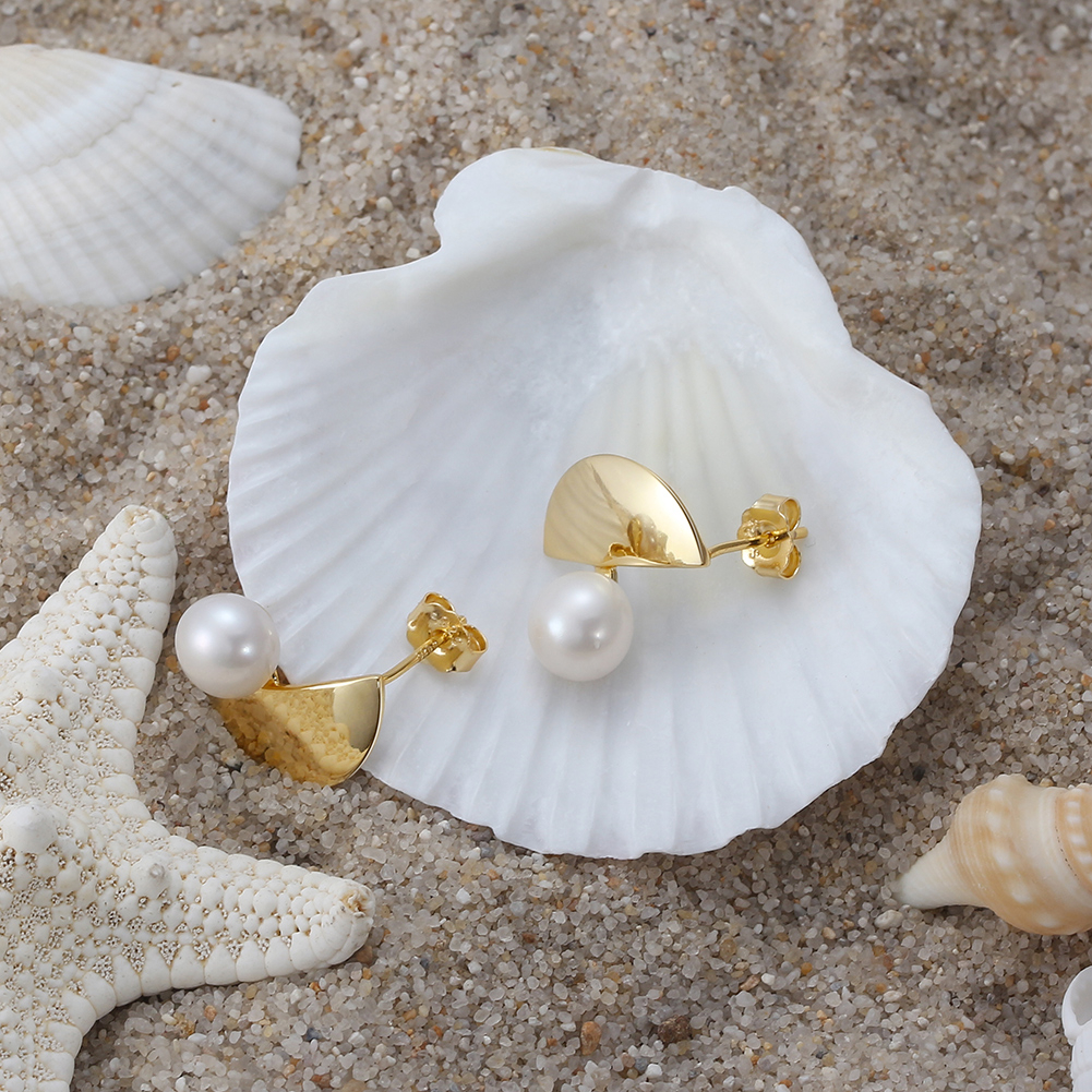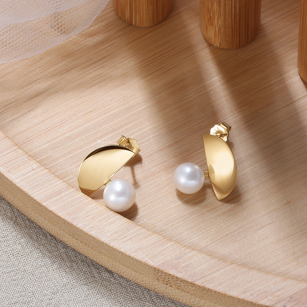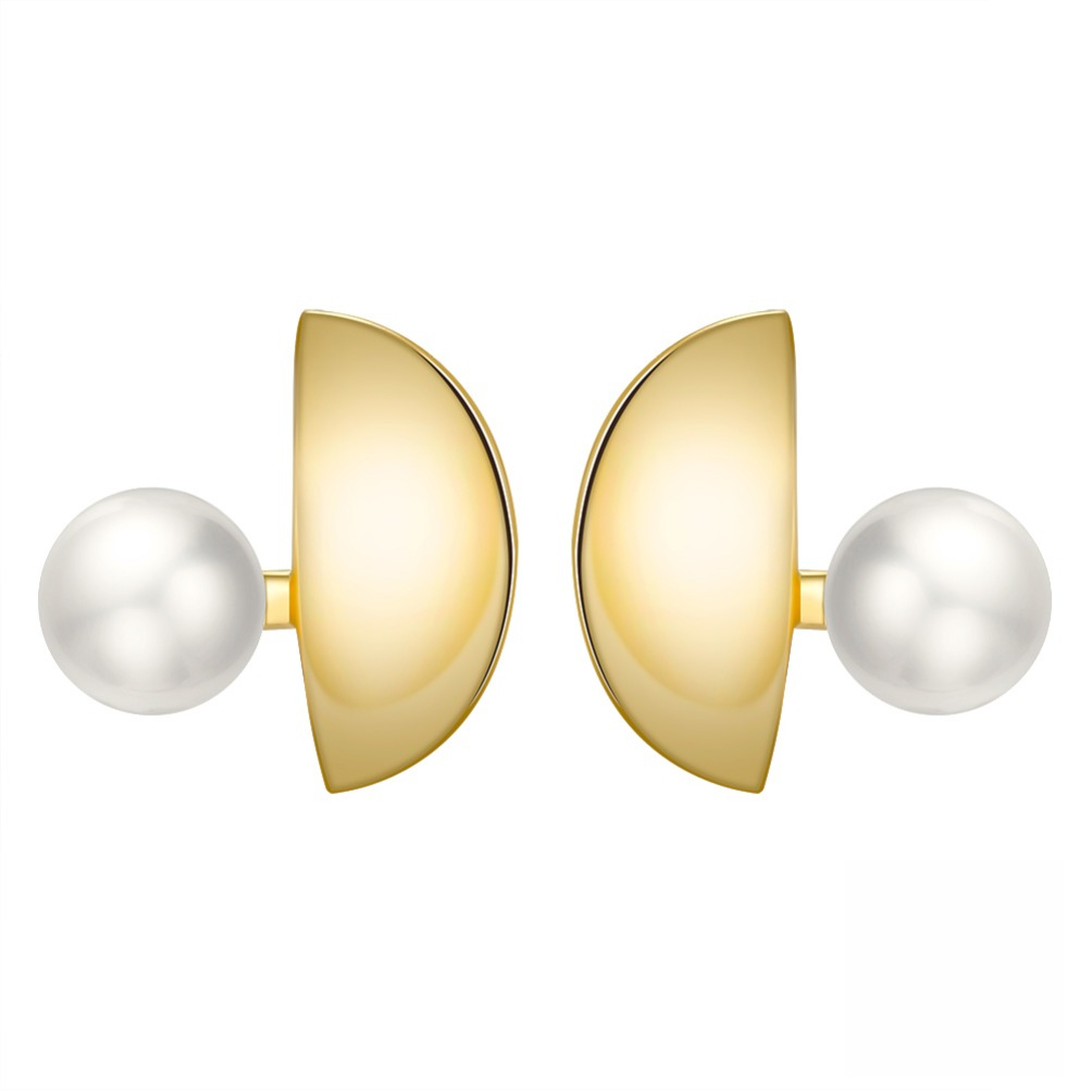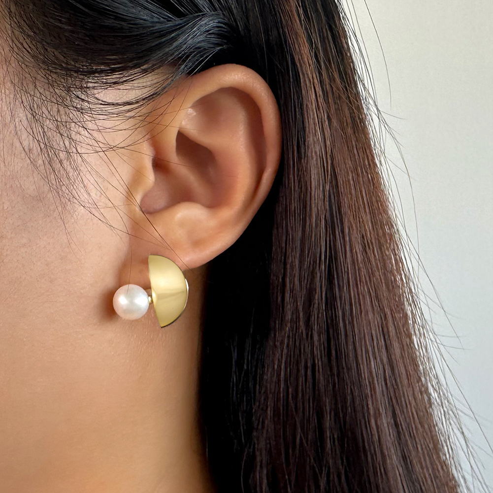 Eleganți și contemporani, cerceii Luce din argint 925 placat cu aur de 14K îmbină rafinamentul perlelor de cultură cu un design geometric modern, inspirat de dinamism și minimalism. Perla de 8 mm adaugă un contrast sofisticat, oferind un echilibru perfect între clasic și modern.
