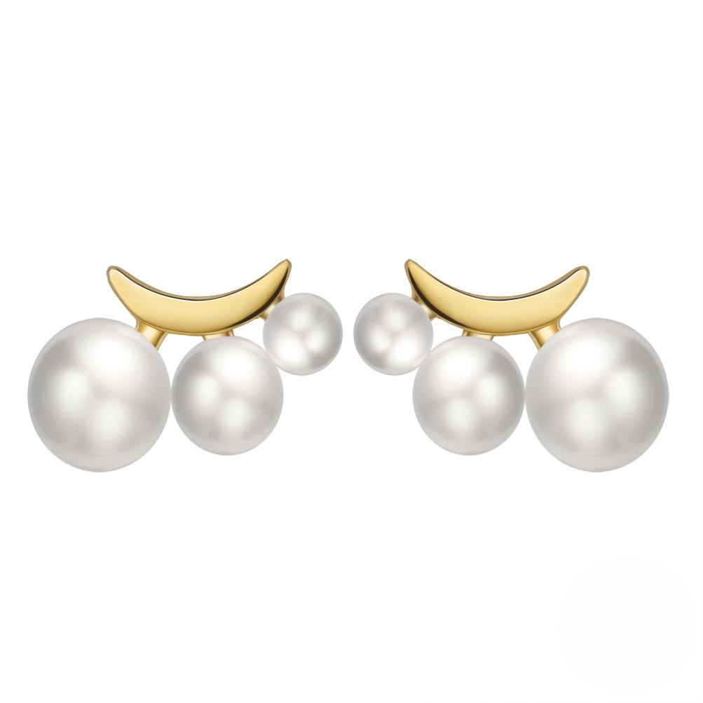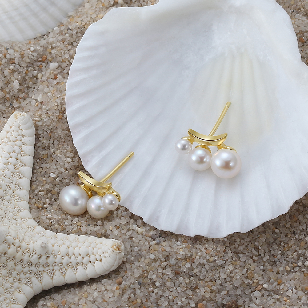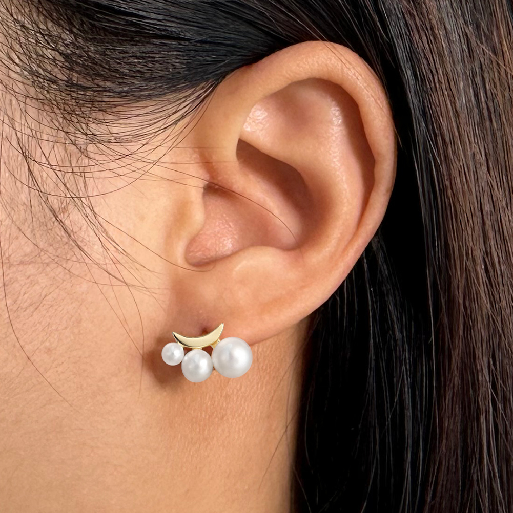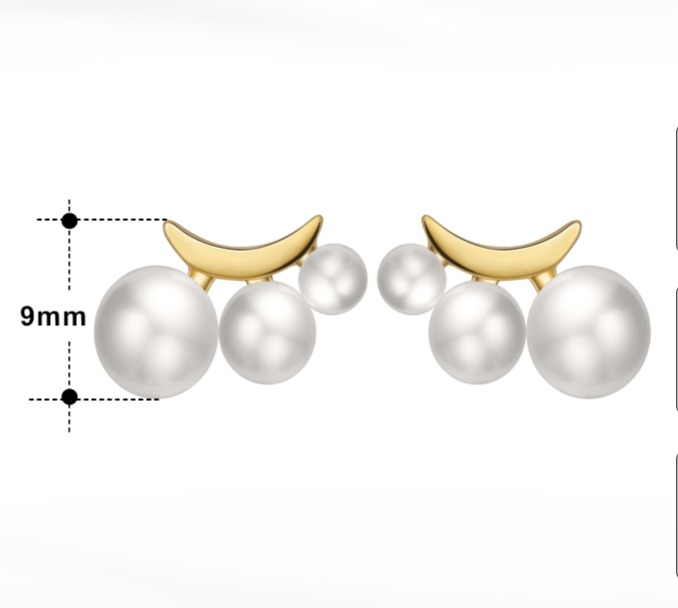 Adaugă o notă de rafinament subtil ținutelor tale cu acești cercei mici și delicati, din argint placat cu aur, decorați cu trei perle mici de cultură. Designul lor în formă de semilună este perfect pentru un look elegant și rafinat, fără a fi nevoie de bijuterii mari pentru a atrage privirile.