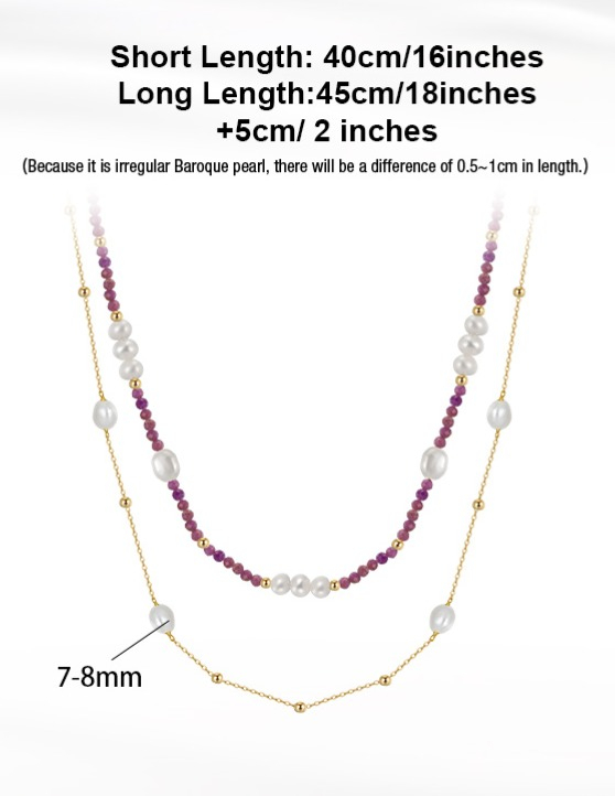 Materiale premium: perle naturale de cultură (7-8mm), argint 925 placat cu aur de 14K, piatra naturală mica purpurie