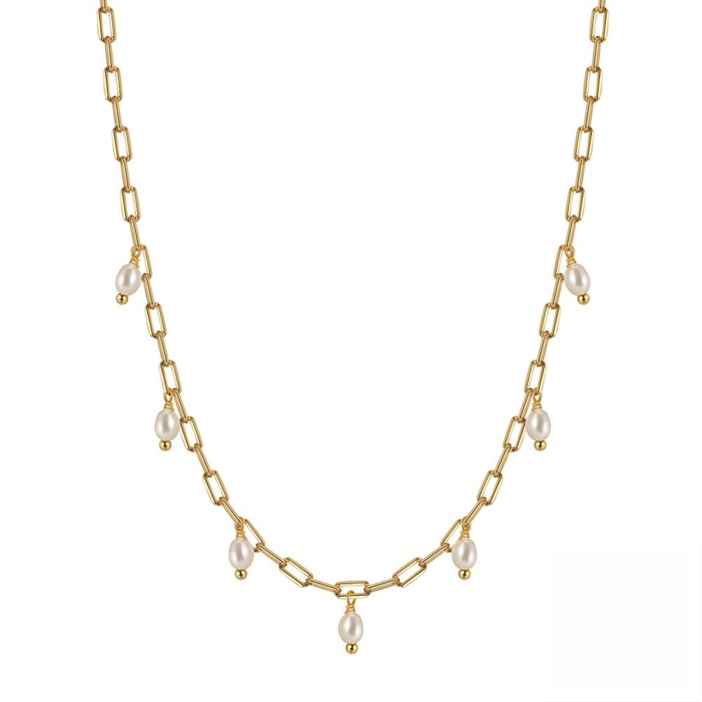 Descoperă eleganța atemporală cu Colierul Paperclip Gold din argint rodiat, decorat cu perle de cultură autentice. Acest colier sofisticat combină rafinamentul perlelor cu designul modern al lanțului tip paperclip, oferind o notă delicată și contemporană oricărei ținute.