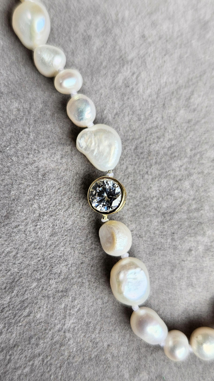 Îmbogățește-ți colecția de bijuterii cu Colierul Zephire, un accesoriu rafinat ce combină perlele baroc deosebite cu un zirconiu strălucitor pentru un efect spectaculos. Acest colier elegant este perfect pentru a adăuga un strop de sofisticare oricărei ținute.