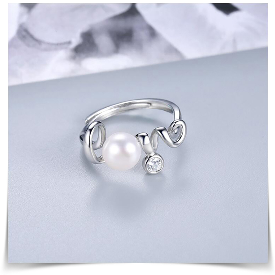 Adaugă un strop de iubire colecției tale de bijuterii cu acest inel elegant din argint rodiat, frumos decorat cu o perlă de cultură strălucitoare și un mic zirconiu, pentru un plus de luminozitate. Designul său unic compune cuvântul „Love”, un simbol al iubirii și al eleganței. Inelul este reglabil, astfel se potrivește perfect pe orice mărime de deget, oferind confort și stil.